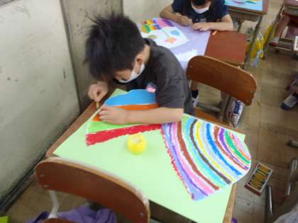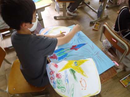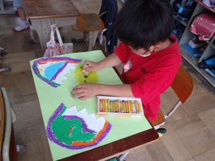 パスを使って,しっかり色を塗っています。のびのびと,素敵な絵をかくことができました。
