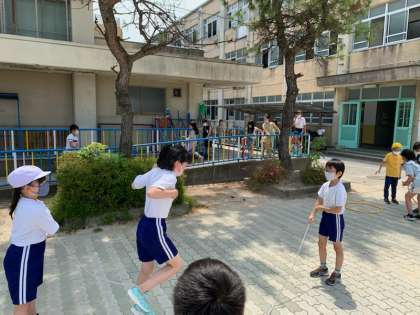 今日の休み時間にみんな遊びで「大縄跳び」をしました。係活動の遊び係が企画してくれて,ドッジボールやしっぽとりなど,毎週2回ほどクラスみんなで遊んでいます。クラスみんなが揃って遊べる時間はとても有意義で楽しい時間です。