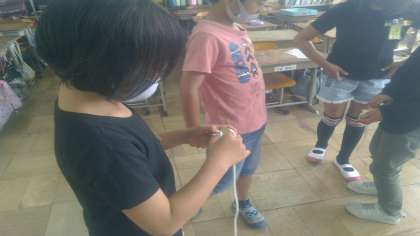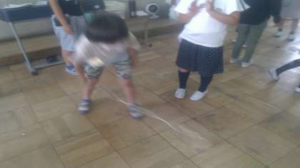 国語の学習で「こまを楽しむ」の学習をしています。今日は実際にこまを回すことに挑戦しました。初めてこまをする子どもたちもいて,ひもを巻くところから苦戦していましたが,楽しんですることができました。休み時間も練習している様子が見られました。