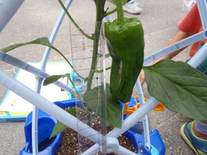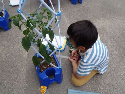 野菜の観察をしました。なんと,約10cmの大きさのピーマンが実っている人もいました。