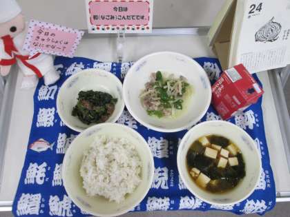 今日は月に一度の和こんだて。今月からしばらくは和こんだてにも牛乳がつきます。