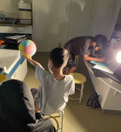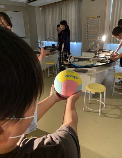 月の形が変わるわけを,太陽との位置関係と予想しました。それを確かめるために実験。宇宙という規模のスケールの大きな知識を理解するために,実験はやはり大切です。