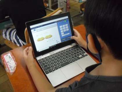 GIGA端末を使っての活動にも徐々に慣れてきました。ミライシードの「ドリルパーク」では,算数や国語の既習事項をクイズ形式に解いていきます。