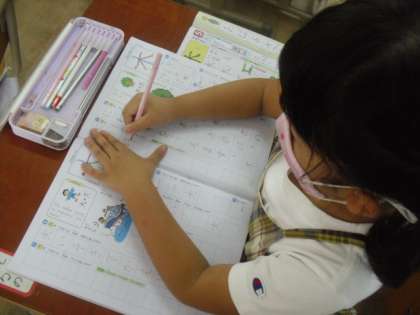 「かんじだ〜!」わくわくしながらワークを広げ取り組みました。