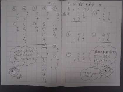 先週と今週のおたよりに,取り組み方の例を掲載しています。参考にしてください。