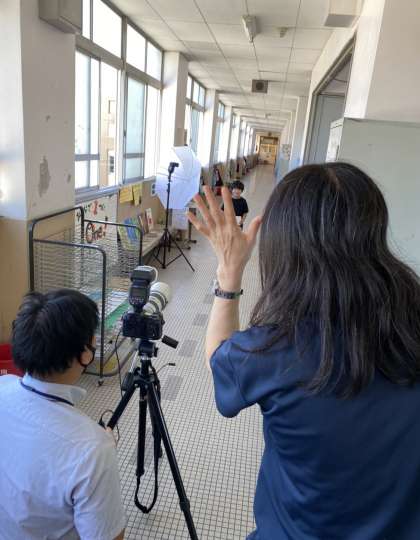 今日は卒業アルバム用の個人写真を撮影しました。自然光の入る校舎内で,まるでモデルになったようなプロの道具に囲まれて撮影を開始。初めは緊張気味の表情の子どもたちも,写真屋さんの「そうそう!」「もう一枚ね!」の声かけに,笑顔で応えていました。