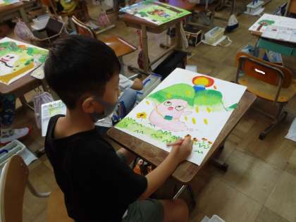 もうすぐ完成します。みんなとても楽しんでかいていました。