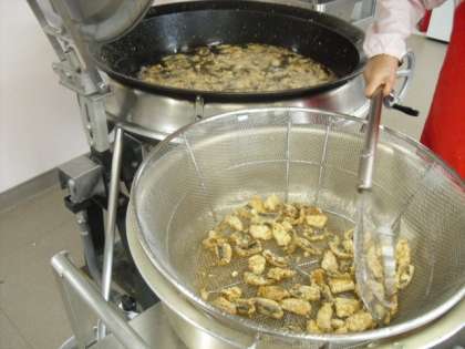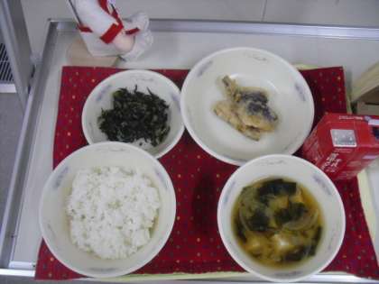 しょうが,料理酒,しょうゆで味つけして米粉,片栗粉でまぶして油であげました。