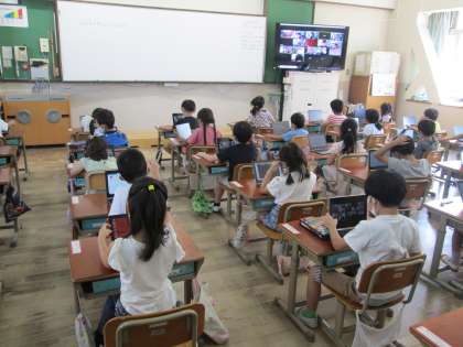 1年生はGIGA端末を使ってオンライン授業をしました。ZOOMの入り方や,オンライン授業中での機能を覚えています。子どもたちにとっては難しい活動になっていますが,何度も挑戦していきたいと思います。