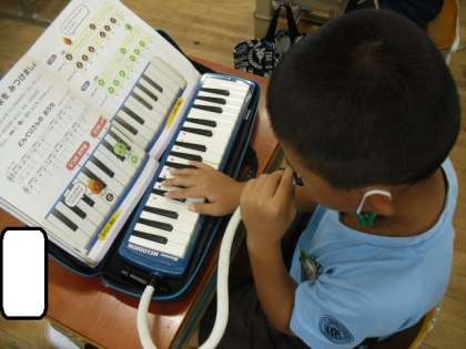 今日の音楽の学習は,けんばんハーモニカを使い「ド・ソ」の位置を覚えました。「どんぐりさんのおうち」の曲を聴きながら,ドやソの音を吹きました。けんばんの位置を覚えるのが難しいですが,何度も練習していきたいと思います。