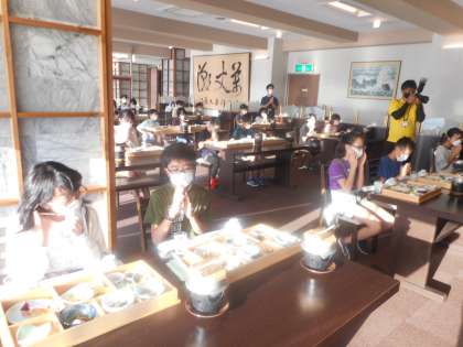 2日目の朝食です。おかずがたくさんありましたが,しっかり食べていました。体も起きて,2日目も頑張っていきましょう。
