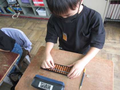 ゆっくりみんなと一緒にそろばんの珠の動かし方を練習したり,得意な子に助けてもらったりしながら,学習を進めていきました。