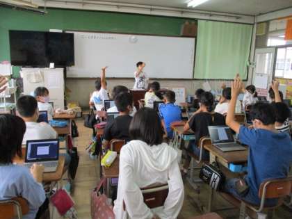 スポーツDAYに向けての取り組みで,今日はスローガンに入れたい言葉探しをしました。