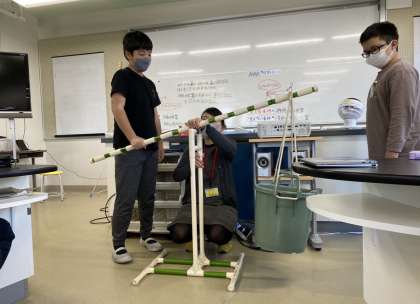 理科では,てこの「手ごたえ」をわかりやすく表すことができないかを考えました。「支点からの距離」と「重さ」が「手ごたえ」を数値化するのに必要な要素なのではないかというのが話し合いの結果でした。