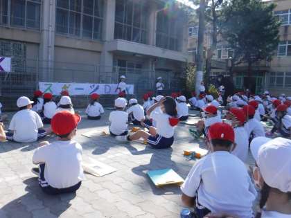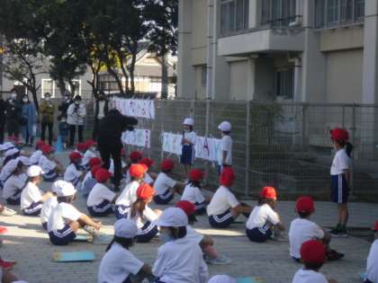 1年生の開会式と閉会式の様子です。始めの言葉や終わりの言葉を言った子どもたちは,休み時間も練習に励んでいました。