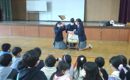 12月1日(水)5時間目に、久世中学校の3年生が久世西小学校にやってきました。各教室や体育館、ふれあいサロン等を使って、中学生が考えた遊びを一緒に楽しみました。