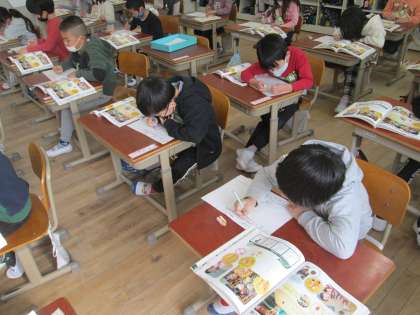 秋見つけで見つけた,どんぐりや落ち葉,松ぼっくりを使っておもちゃ作りをします。今回は,おもちゃ作りの設計図を書きました。どんぐりごまや,松ぼっくりけん玉など,様々なおもちゃを考えることができました。