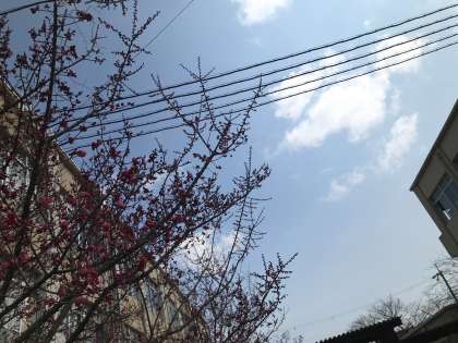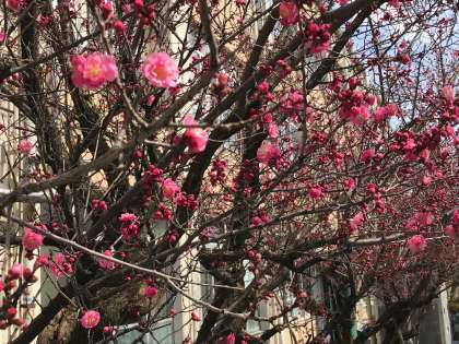 正門付近の梅の花。開花し出しました。