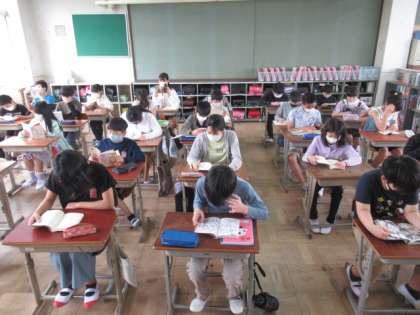 朝,8時30分から10分間,朝読書に取り組んでいます。