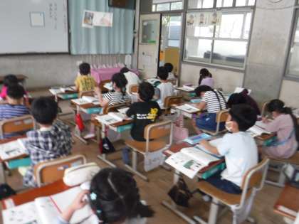 今日の国語の時間では,「あ」「い」「う」「か」から始まる2文字,3文字,4文字の言葉集めをしました。言葉を言いながら手拍子で何文字かを確かめたり,どんな言葉があるかを考えて交流したりしました。