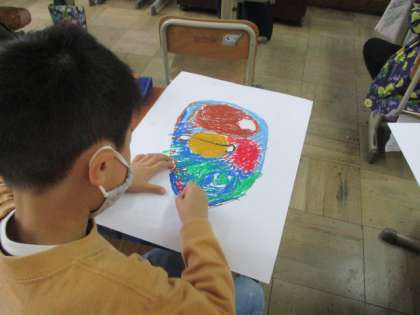 不思議なたまごから想像したことや不思議なたまごから生まれてくるものを楽しく想像し,形や色などを考え,たまごを作りあげました。中からどんなことが生まれてくるのかとっても楽しみですね。