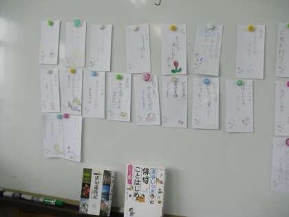 研究の取り組みの一つである「春の俳句をつくろう」に挑戦しました。GIGA端末で春の季語を調べると,「え,それも春の季語なの!?」と驚いている児童がいました。みなさんは,どんな瞬間に春を感じましたか?