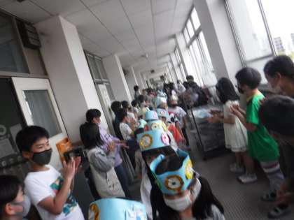 1年生が校内をパレードしている様子です。笑顔で出迎えてくれるので,子どもたちからも,自然と笑みがこぼれていました。
