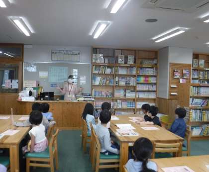 今日は図書室で司書教諭の先生から,図書室についてオリエンテーションがありました。図書室にはたくさんの本があることや,本1冊ずつに住所があることに,子どもたちは驚いていました。