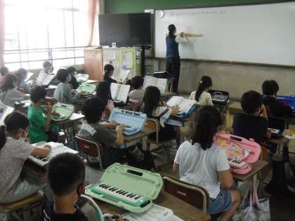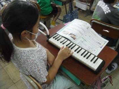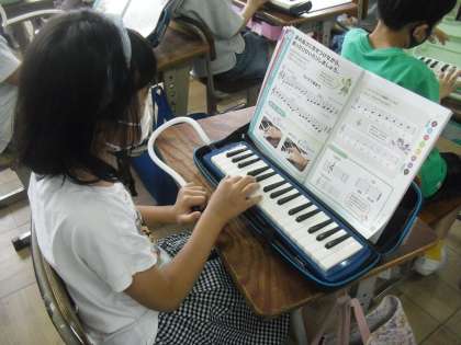 けんばんハーモニカで,指またぎや指くぐりの学習をしました。