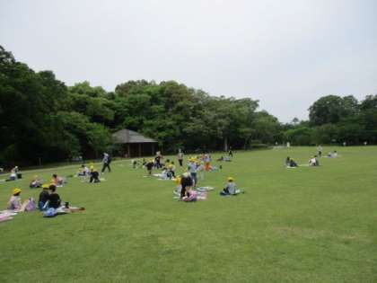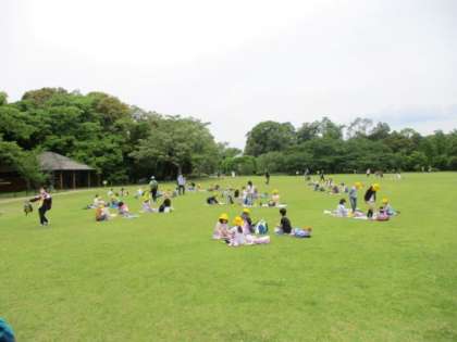 お弁当を食べている様子です。お弁当の準備ありがとうございました。たくさん歩いて,ラリー中から「おなかへった!」という声もありました。お待ちかねのお弁当を見たり食べたりして,子どもたちの元気も少しずつ回復していきました。お弁当をたべ終わったころには元気いっぱいで走り回っていました。学校に帰ってくると「また行きたい!」「明日も遠足がいい!」と言っている子どももいました。小学校生活初めての遠足で楽しい思い出ができてよかったです。