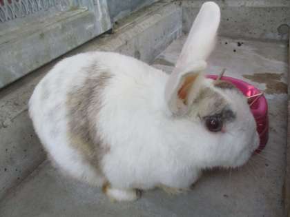 青い目にふわふわの毛並みのかわいいうさぎです。久世西小学校のなかまとして,元気に過ごしてほしいと思います。