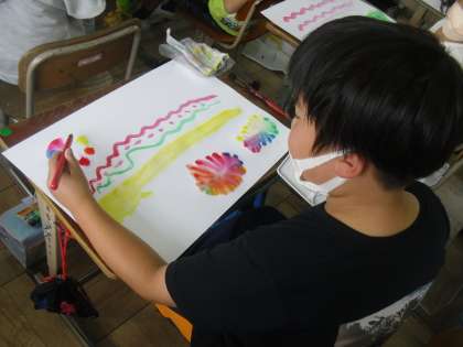 【3年生】5月20日 図工「絵のぐ+水+ふで=いいかんじ!」その1