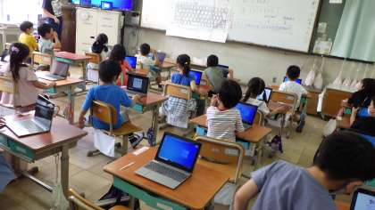 今日の学活の時間では,初めてタブレットを使って学習をしました。自分のユーザー名とパスワードを入力することに子どもたちは苦労していましたが,入力できたときはとても喜んでいました。