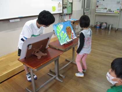 春の遠足で訪れた京都水族館で思い出に残っていることや気に入った写真を選び,絵を描きました。その絵が完成し,みんなで鑑賞会をしました。自分の絵の題名と頑張ったところを発表し,質問に対して上手に答えることができました。みんなの絵のいいところを参考にして,次の作品につなげてほしいと思います。