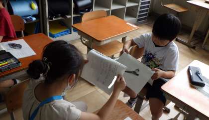 国語では,引き続き「くちばし」を学習しています。今日は,一つ目のくちばしについて書かれている文を読んで,どのような順番で文が書かれているかを考えました。問題→答え→説明の順に書かれていることが分かった子どもたちは,さっそく友達にクイズを出して,楽しんでいました。