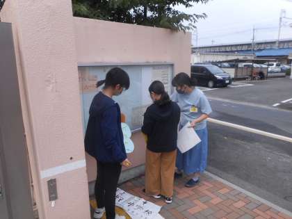 正門横の掲示板を新しくしてくれました。どんな掲示板かは見てのお楽しみ。