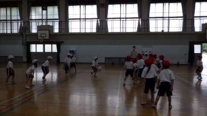 今日は来週に行われるドッジボール大会にむけての練習を行いました。最初はルールを覚えきれず戸惑う子どももいましたが,何度もルールを確認することで,最後は転がしドッジボールを楽しむことができました。