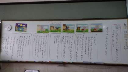 今日の道徳の学習では,「ぞうさんとおともだち」をテーマに「ともだちっていいね」ということについて考えました。登場人物の気持ちになって考えることで,友達を大切にしたいという思いを持つことができました。