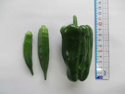 ピーマンは食べごろの大きさになり,既に収穫していた子がいたのですが,ミニトマトも少しずつ色づきはじめました。オクラもぐんぐん成長中です。