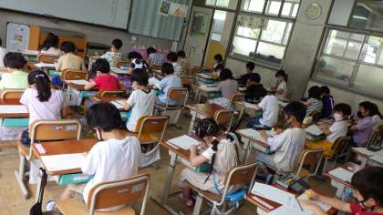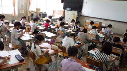 今日は,京都市の硬筆書写作品展にむけて,書き方鉛筆を使って字を書きました。いままでにならったひらがなをとめ,はね,はらいに気をつけて丁寧に書きました。子どもたちはとても集中して頑張っていました。
