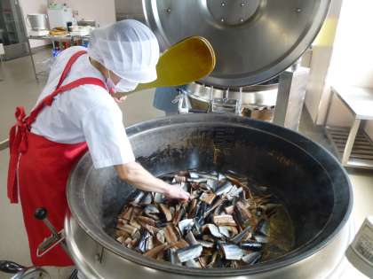 にしんを炊いた煮汁で,なすを炊きます。なすは脂ののったにしんととても相性がよく,なすにもにしんのうま味がよくしみ込んでいました。