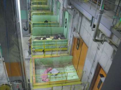 クリーンセンターに運ばれてきたごみが,まずはここに集められます。パッカー車だけでなく,一般の方も持ち込みをされていました。