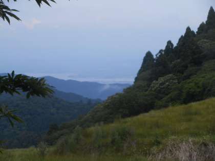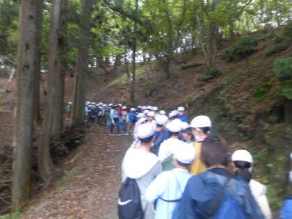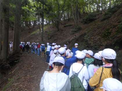 1時間ほど山を登ると,景色のといところに出ました。花脊峠から,滋賀県の琵琶湖を展望することができました。そして何より驚いたのは,今子どもたちが登ってきたこのハイキングコースは70年ほど前は,子どもが学校に通う通学路だったとか。これが毎日続くとなんて,昔の人は凄かったんだと改めて感じます。