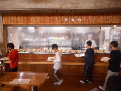 山の家の食堂を利用させていただき食事をとりました。しっかり運動した後のご飯は格別においしかったでしょう。食事はセルフサービスで自分で用意しました。