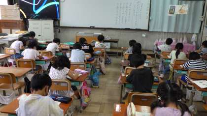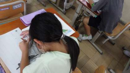 今日の国語では,助詞の「は」「を」「へ」の学習をしました。最初に「は」「を」「へ」を使った歌を音読して,「は」「を」「へ」はどんな時に,同じ字でも読み方が変わるのかを考えました。その後,「は」「を」「へ」を使った文づくりにも挑戦しました。最初は苦労していた子どもたちでしたが,作り方が分かると,どんどん文づくりに挑戦していました。