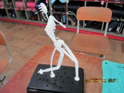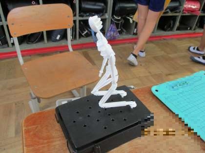 図工科で「未来のわたし」という単元の学習をしています。針金や木を使ってヒト型を作る予定でしたが、材料が手に入らなかったために、プラスチックのヒト型を使用しています。自分の好きなスポーツからポーズを考えたり、将来やりたいことからポーズを考えたりしていました。次の時間は、作ったポーズに紙粘土で肉付けをしていきます。その後、色付けをして完成となります。