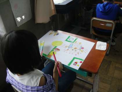 絵の具やパスを使って色塗りをしました。完成がとても楽しみですね。