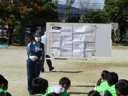 運動場では、初めに京都府南区警察署の方から、自転車教室についての話や実技テストの注意点を聞きました。