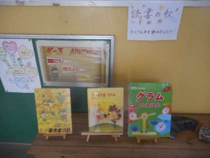 読書の秋です。読書をして心の栄養をたっぷり育てていきましょう。きらきら教室の掲示板も10月の言葉遊びに変わっています。