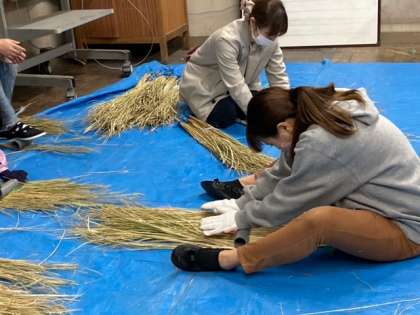 今日は一回目、藁の長さを仕分けする作業をしました。学級委員の皆様のお力添えで、予定よりもはかどり、藁を柔らかくする工程まで進められました。